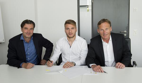 Comme prévu, Ciro Immobile (24 ans, 33 matchs et 22 buts en Serie A cette saison) a rejoint le Borussia Dortmund. L'attaquant italien, meilleur buteur de la dernière Serie A, s'est engagé ce lundi pour cinq ans avec le club allemand. L'ancien joueur du Torino récupère le numéro 9 de Robert Lewandowski, parti au Bayern Munich. L'indemnité de transfert est estimée à 22 millions d'euros.