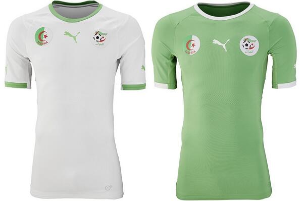 Puma a dévoilé ce mercredi les deux nouveaux maillots qui seront utilisés par l'Algérie pendant la Coupe du monde au Brésil. Des tuniques très classiques pour les Algériens avec le vert et le blanc traditionnels.