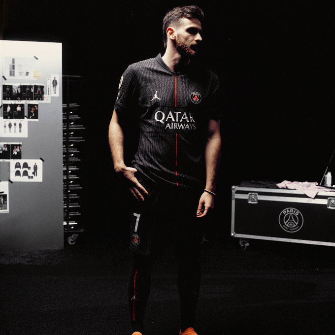 Ce maillot s'inscrit dans le cadre du partenariat entre le PSG et la marque américaine Jordan. Il devrait être porté par les joueurs de Luis Enrique dès mercredi (21h), pour le match de Ligue des Champions contre Tottenham au Parc des Princes.